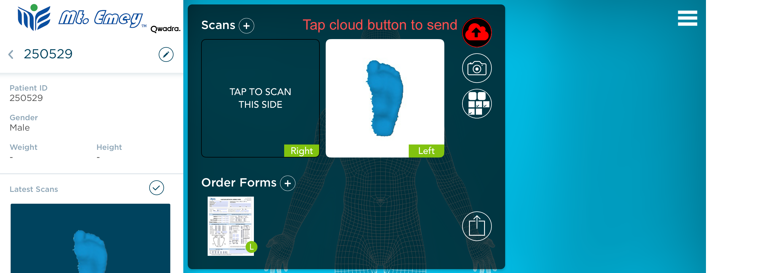6. Tap the cloud button to send your scan with the order form.
